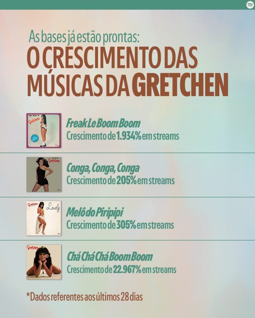 Gretchen quebra o Spotify com crescimento de 22.000% após viralizar